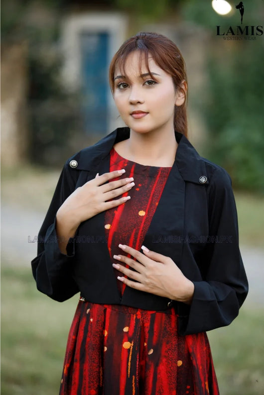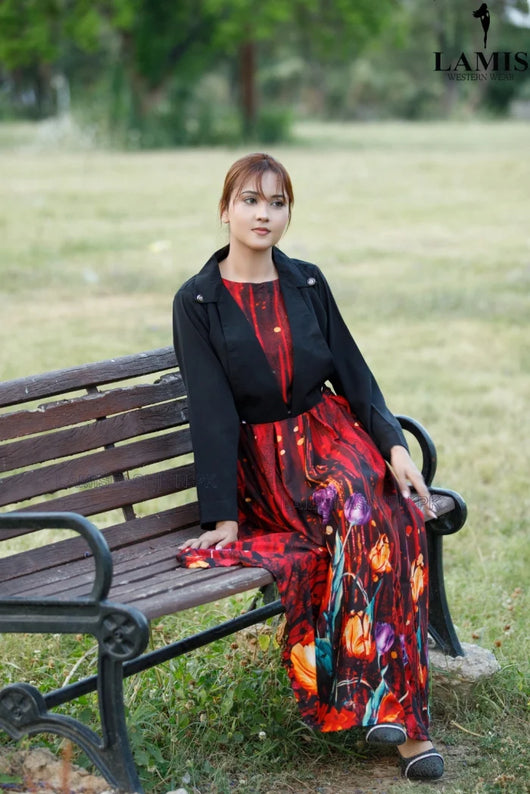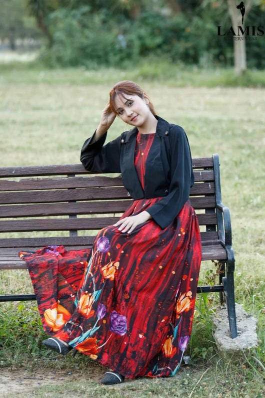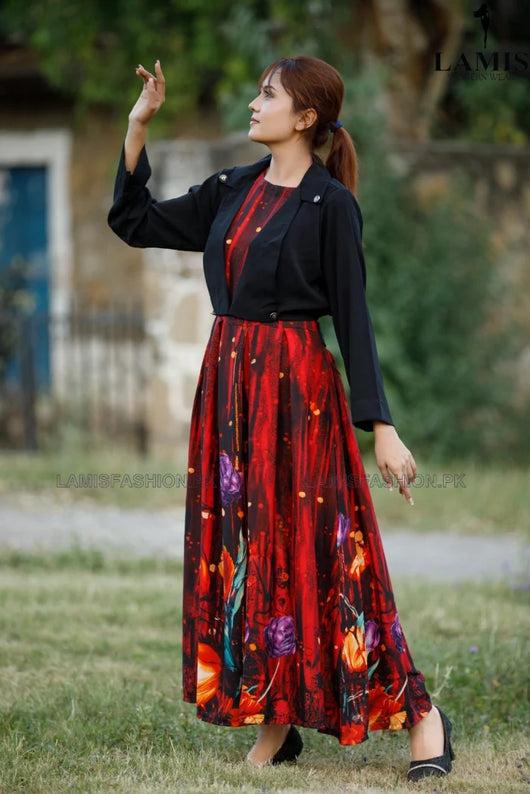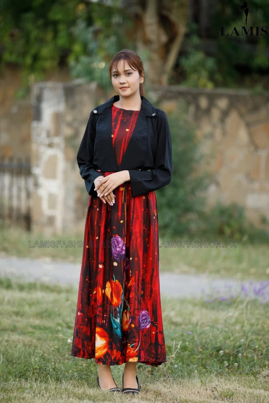 Design: CDM#003Color: Black & MaroonFabric: Imported Georgette Summer WearSize: Small Medium Large Product DetailElevate your style with our Long Koti Style Maxi Dress, designed to make a statement for women and girls alike. This exquisite...